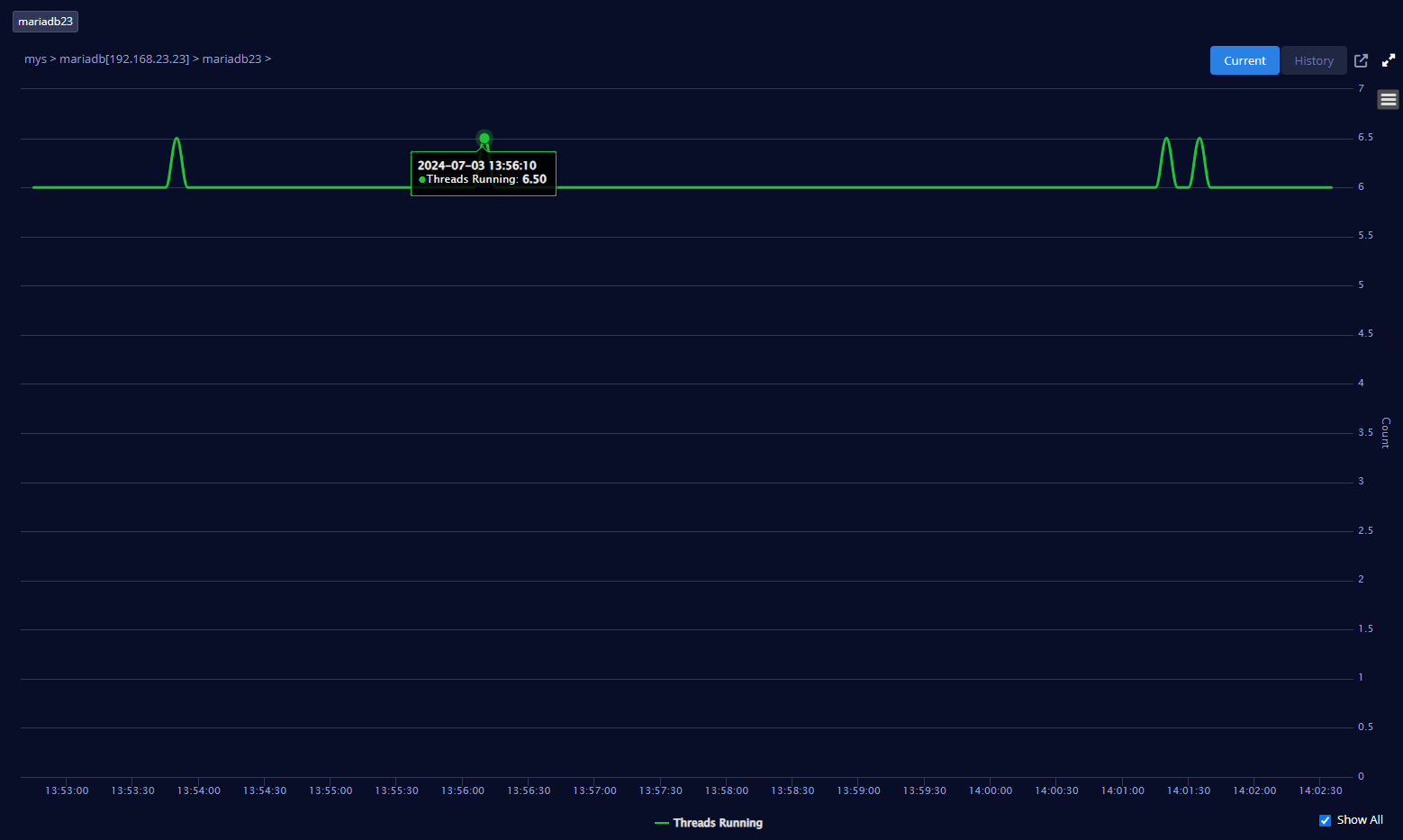 Running Thread Count를 시간 경과에 따라 모니터링하고 변경 사항이나 추세를 추적하는 것이 중요합니다. 이는 데이터베이스의 전반적인 수요와 워크로드를 이해할 수 있는 방법을 제공하기 때문입니다. Running Thread Count가 지속적으로 높은 경우 증가된 워크로드를 처리하기 위해 데이터베이스를 최적화하거나 확장해야 함을 나타낼 수 있습니다.