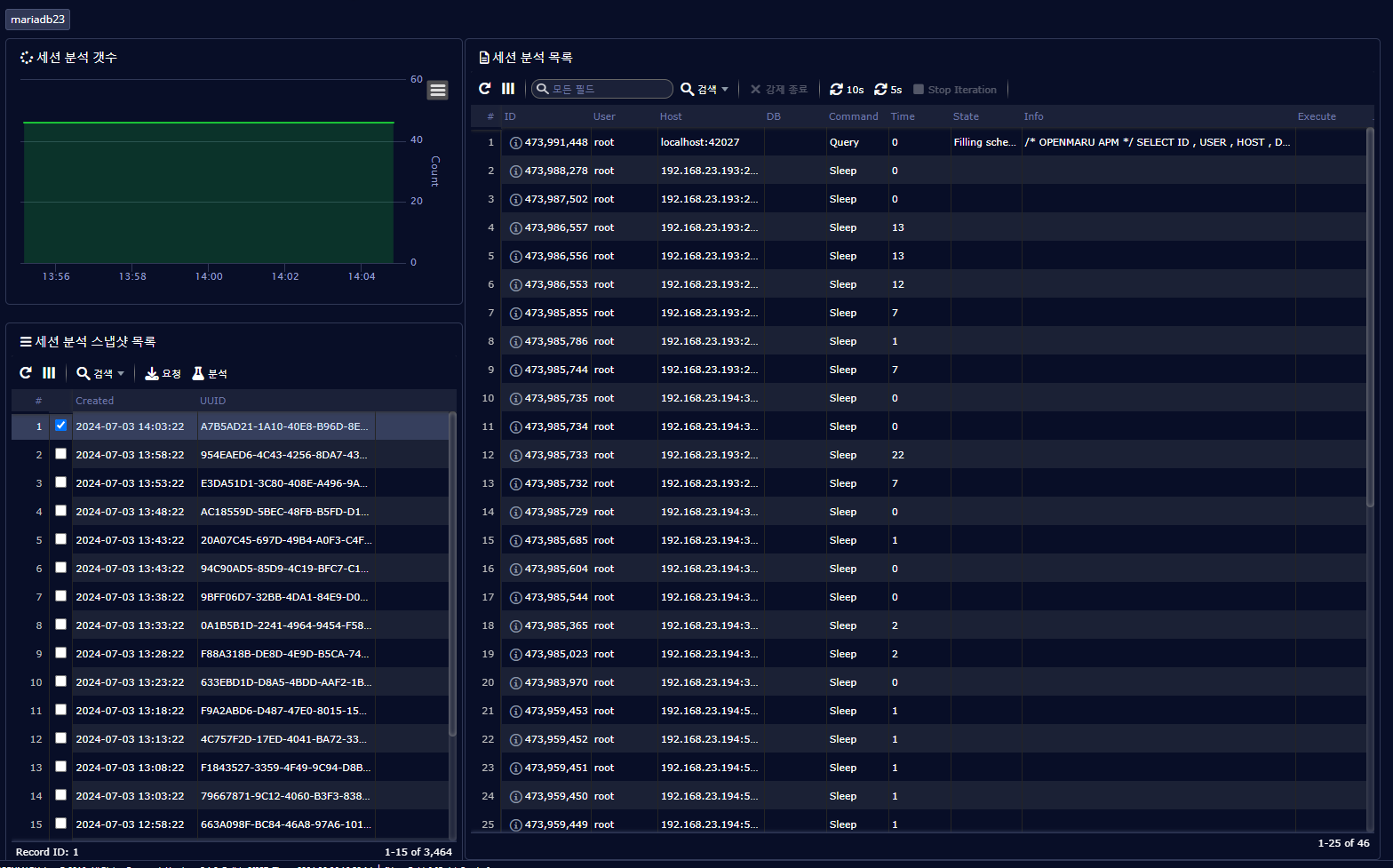 MySQL의 세션 분석은 MySQL 데이터베이스 내에서 개별 사용자 세션의 동작을 모니터링하고 분석하는 프로세스를 말합니다. 여기에는 각 세션에서 실행된 쿼리, 사용된 리소스 및 세션의 전반적인 성능 분석이 포함됩니다. 이 정보는 성능 병목 현상을 식별하고 데이터베이스 성능을 최적화하는 데 도움이 될 수 있습니다.