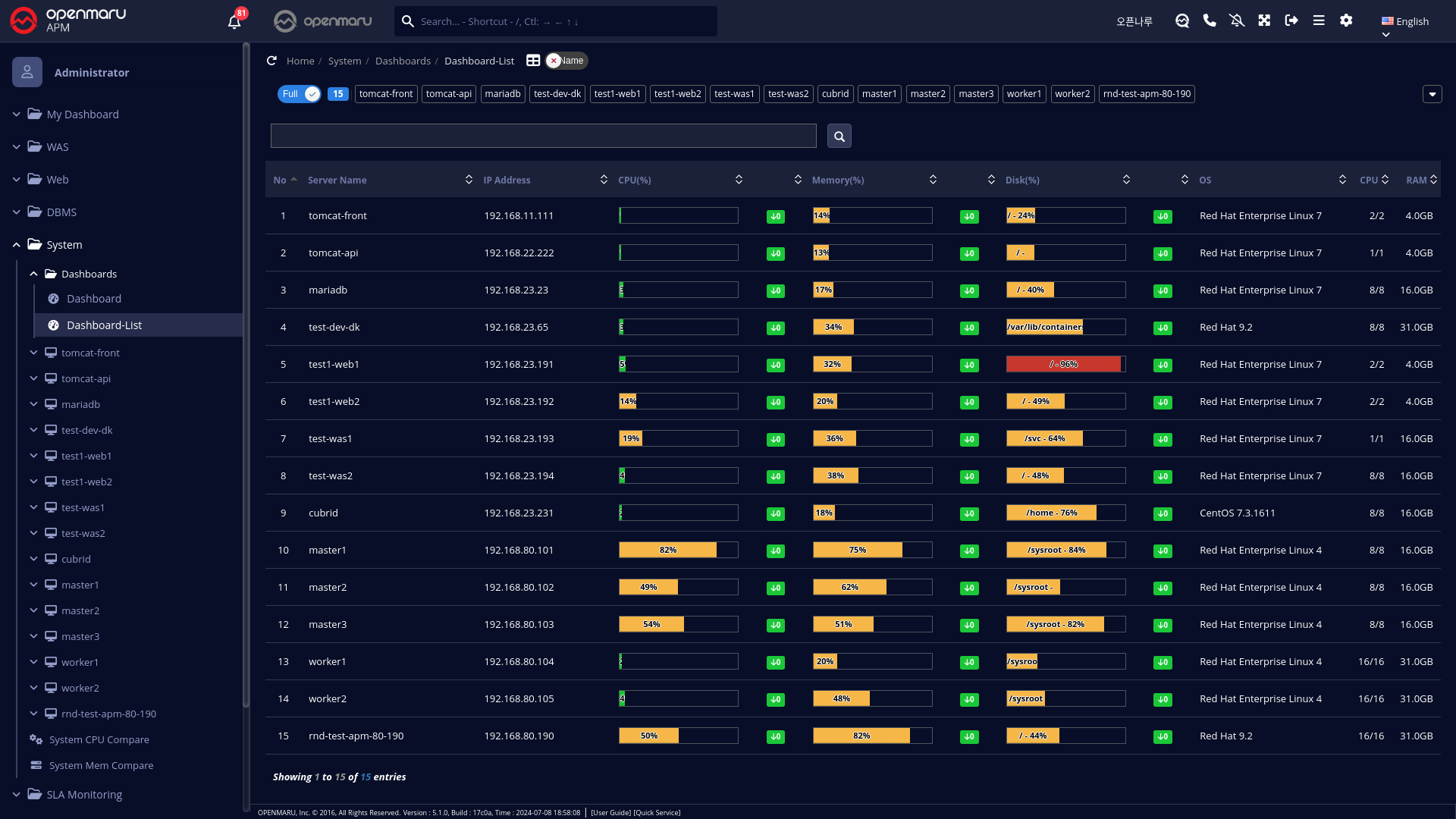 해당 업무 애플리케이션에 속한 인스턴스들에 대해 모두 표시한다.