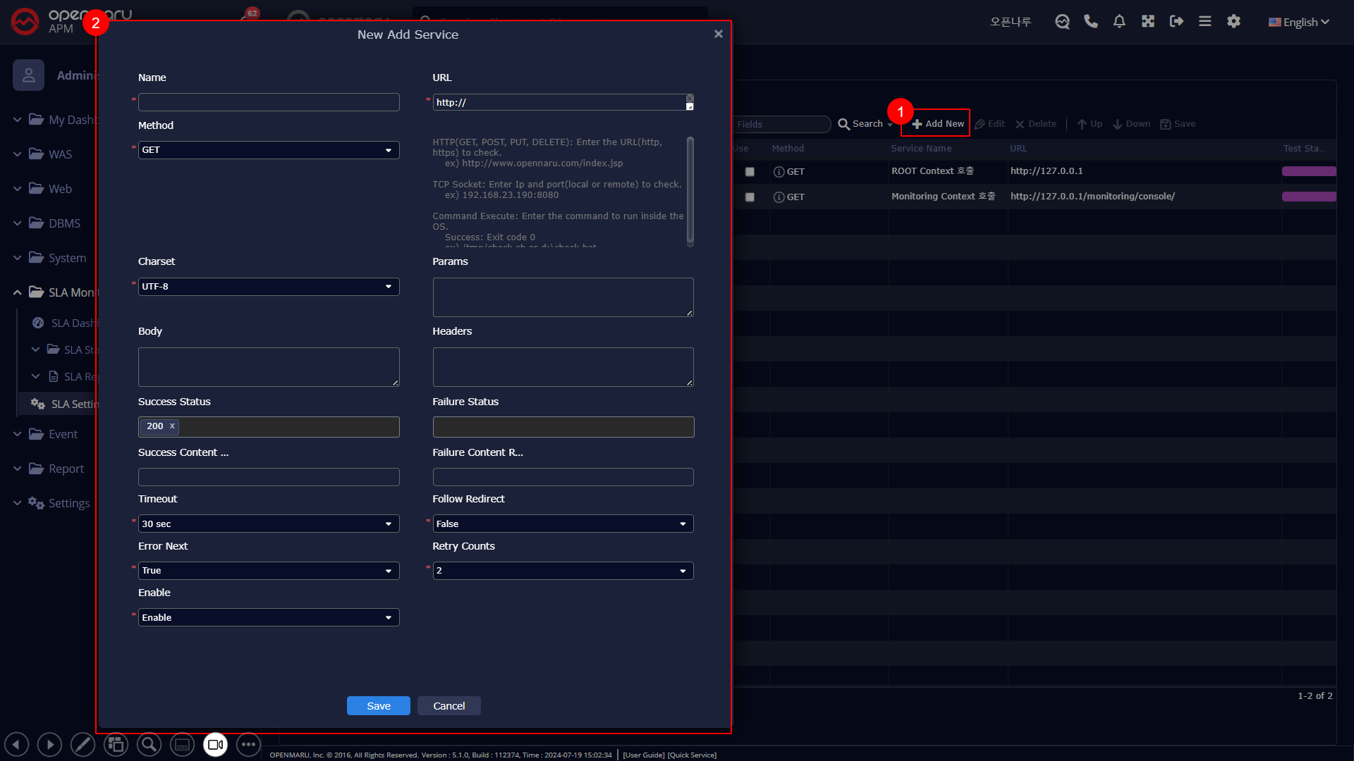 OPENMARU APM 은 HTTP 기반의 응답코드를 활용해 애플리케이션의 상태를 모니터링하는 SLA기능을 제공한다.