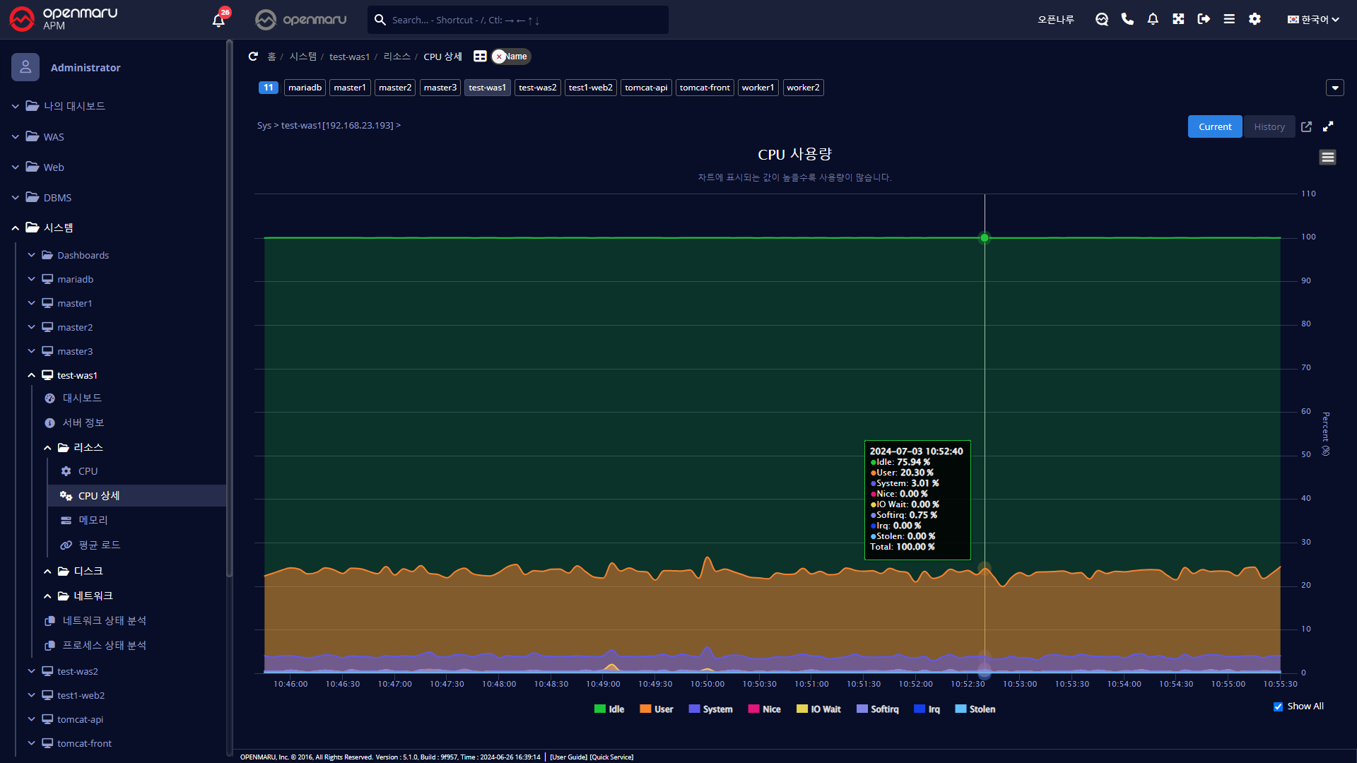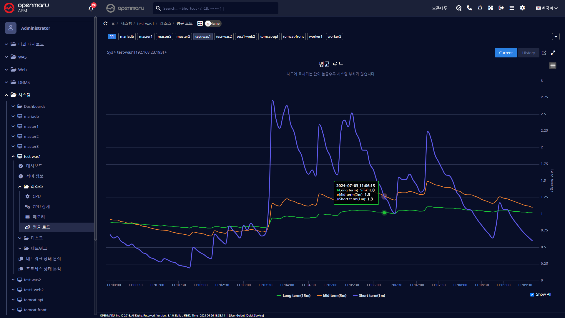물론, Current 차트에서는 1, 5, 15분 평균값이 잘 표시되지만, History 차트에서는 시간, 수십분 단위의 평균 데이터를 표시하기 때문에 전체적으로 1, 5, 15분 평균값이 거의 비슷한 값이 표시된다.