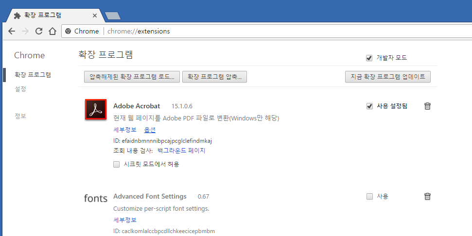 - ‘압축해제된 확장 프로그램 로드…’ 버튼을 클릭한다.