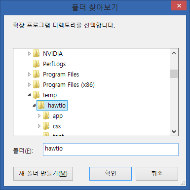 - C:\Temp\hawtio 디렉터리를 선택한 후, 확인을 클릭한다.