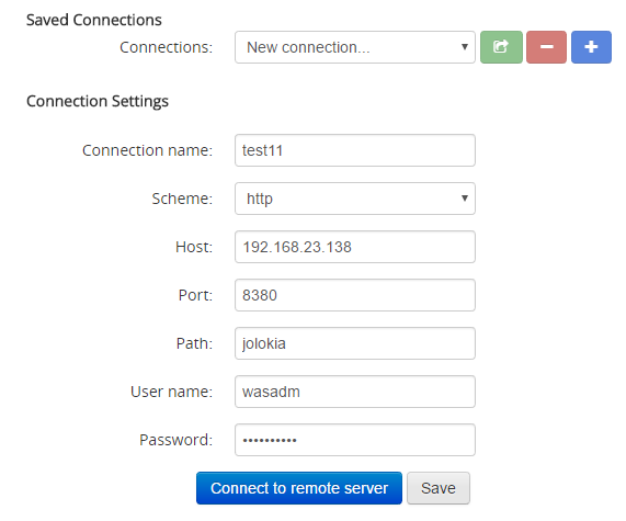 JBoss 서버의 IP 주소와 HTTP 접속 포트, JBoss Admin Console로 접속하기 위한 ID, 패스워드를 입력한 후 ‘Connect to remote server’를 클릭한다.