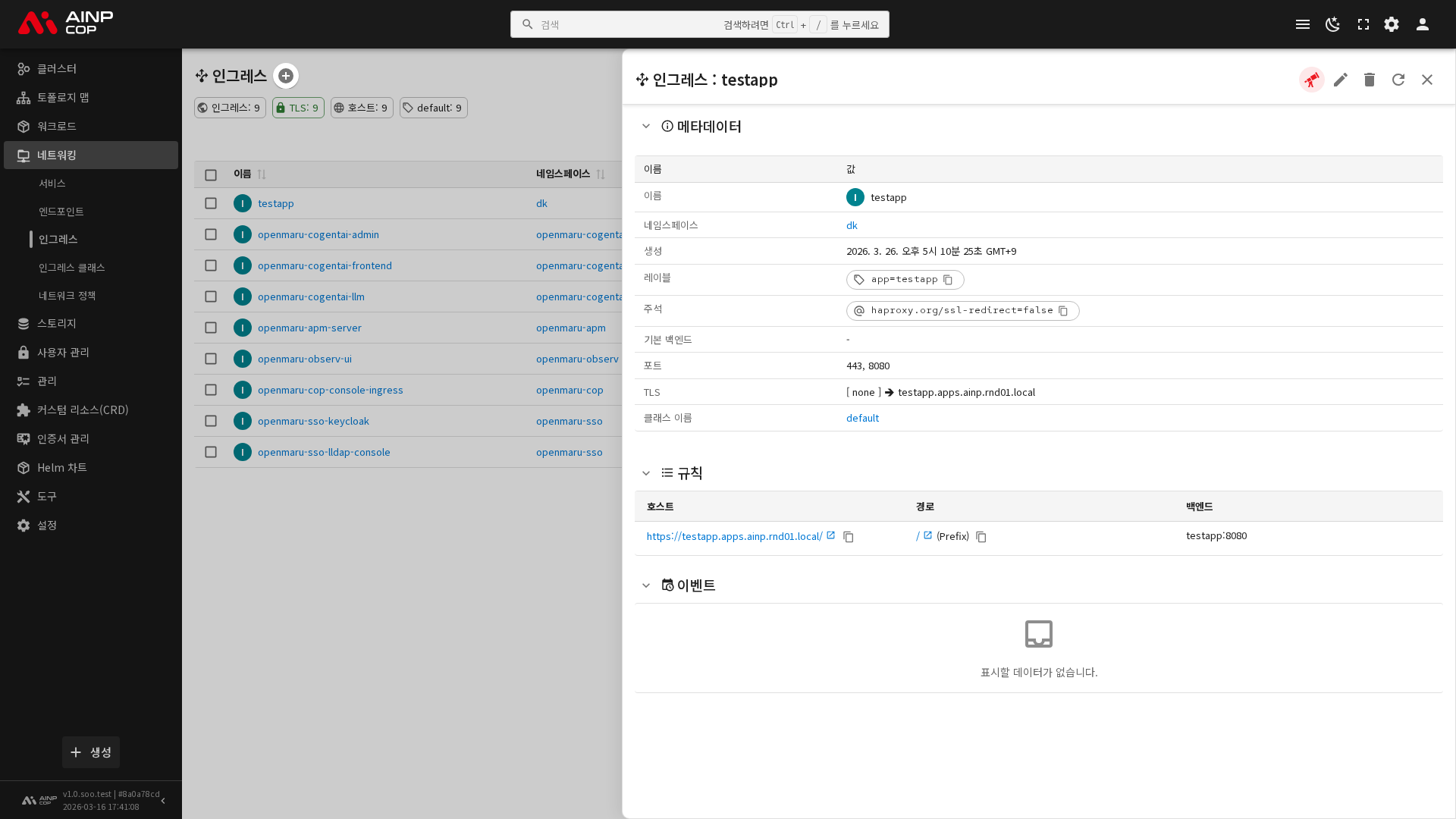 인그레스 상세 화면에서는 라우팅 규칙의 전체 구성을 확인할 수 있습니다.