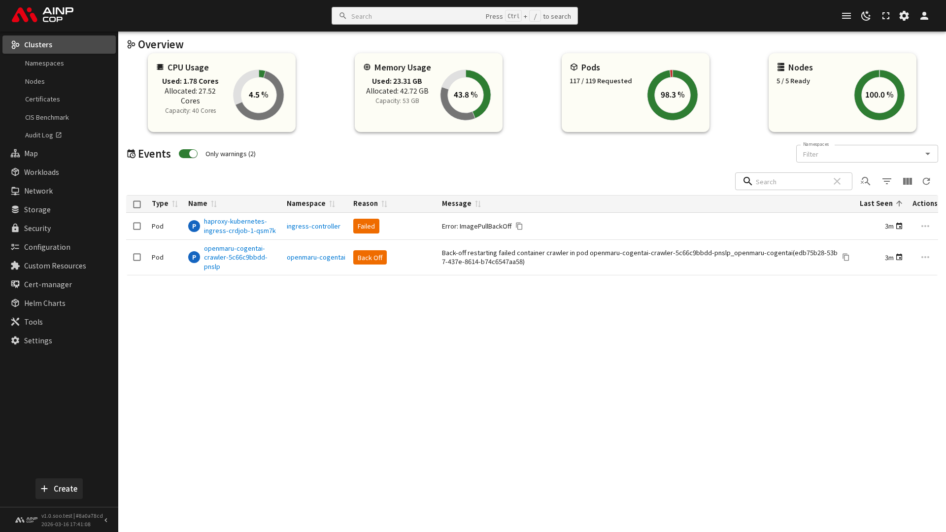 | AI/GPU | GPU Operator, vLLM, CogentAI | AI/ML 워크로드 실행 환경 |
