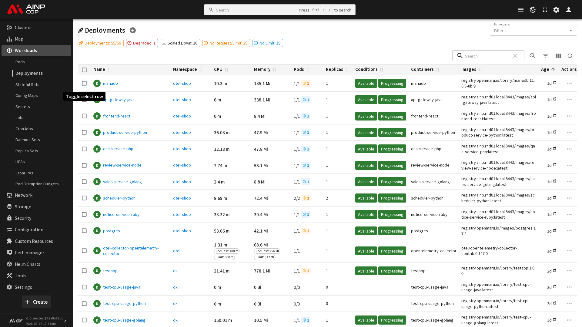 클러스터에 생성된 배포의 정보가 목록 형태로 표시됩니다.