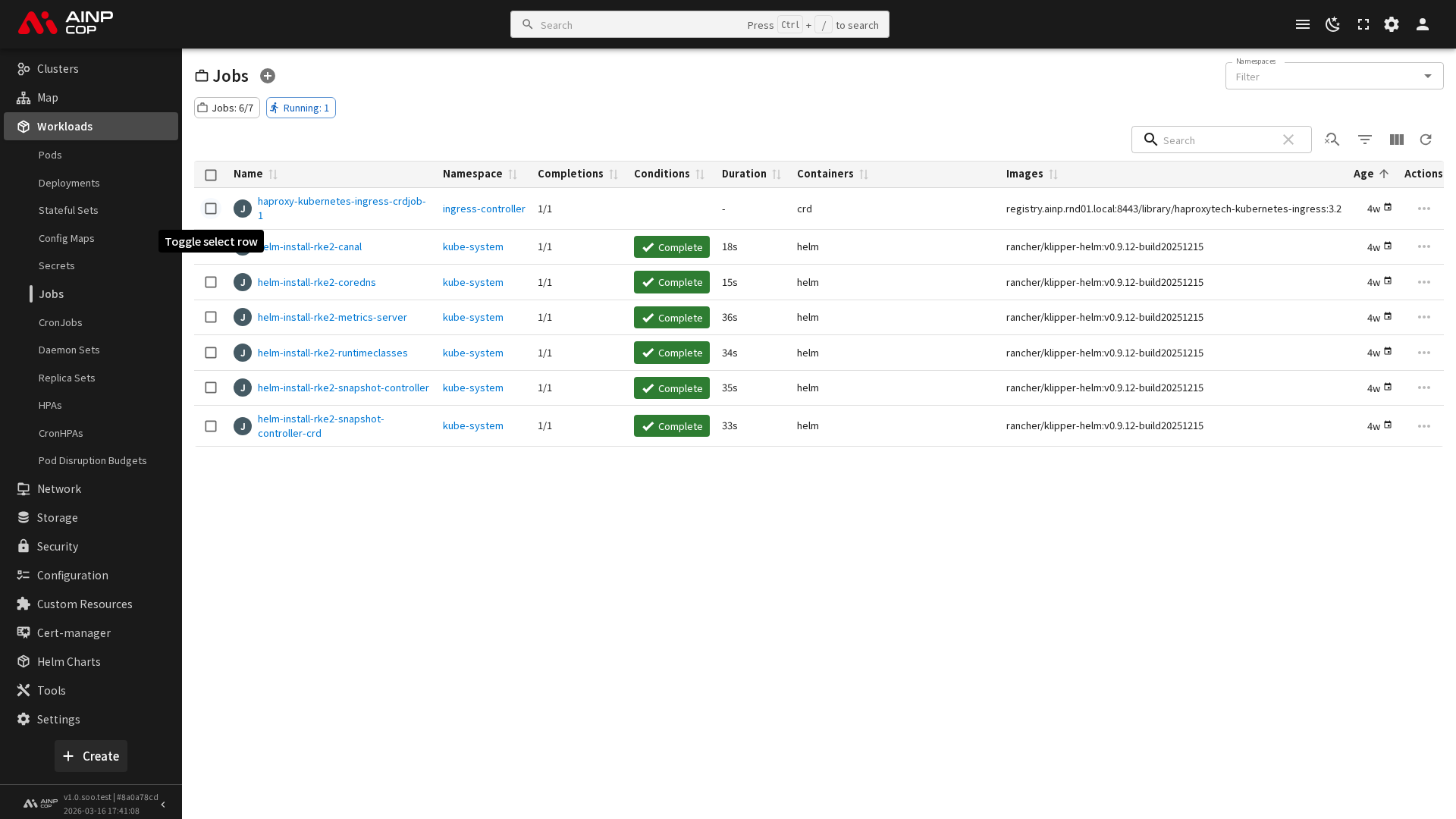 COP 콘솔의 '작업(Job)' 메뉴에서는 하나 이상의 파드를 생성하여 지정된 수의 파드가 성공적으로 완료되도록 보장하는 워크로드를 관리합니다. 작업은 배치 처리, 데이터베이스 마이그레이션 등 한 번 실행되고 종료되는 태스크를 수행하는 데 유용합니다.