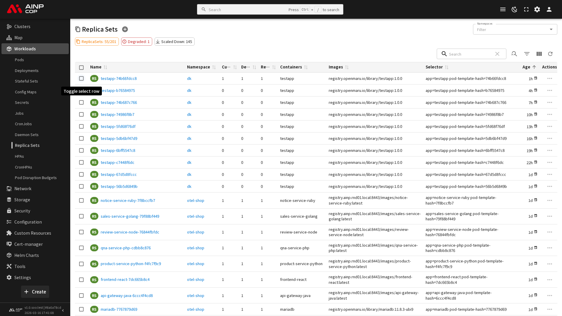 클러스터에 배포된 복제 세트의 정보가 목록 형태로 표시됩니다.