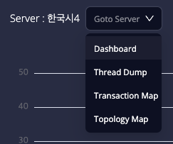 OPENMARU APM의 각 메뉴에 이동 할 수 있는 기능이다. 애플리케이션 처리 상황이 빨간색으로 표시되면 그 원인을 확인하여 조치하여야 한다. OPENMARU APM에서는 다양한 지연원인 분석도구를 제공하고 있으니, APM 서버의 분석기능을 사용할 수 있는 메뉴로 바로 이동할 수 있습니다.