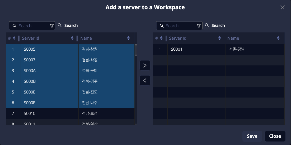드래그를 통해 여러 개의 서버를 한 번에 옮길 수 있다.