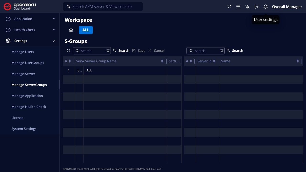 서버 그룹 관리 페이지에서는 워크스페이스 관리, 서버 그룹 관리를 할 수 있다.