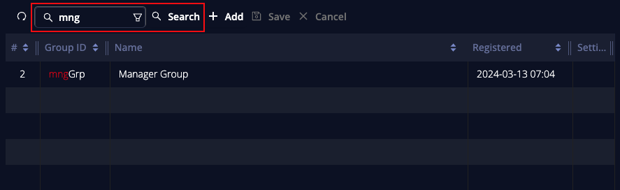 검색을 통해서 특정 데이터만 확인할 수 있다.