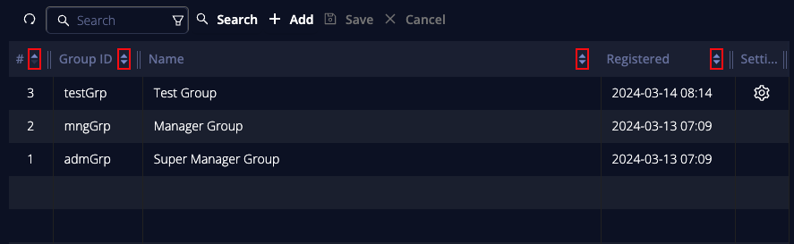 테이블 데이터를 정렬을 통해서 확인할 수 있다.