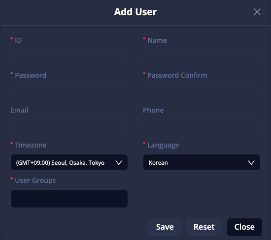 사용자 관리는 대시보드 사용자를 등록하고 수정하는 메뉴이다.