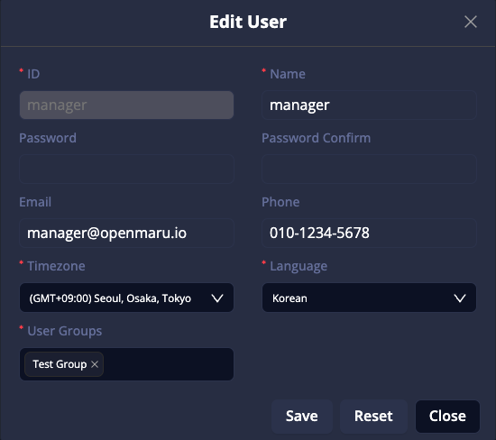 대시보드 사용자를 수정할 수 있는 기능이다.