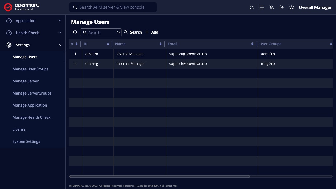 기본적으로 omadm, ommng권한을 가진 계정이 등록되어 있다.