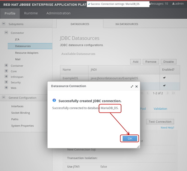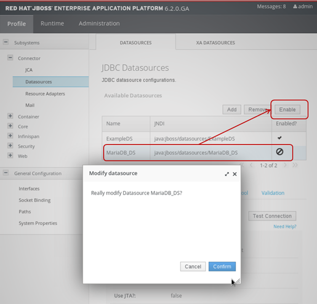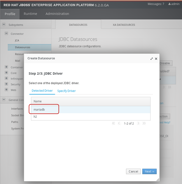 JBoss 인스턴스를 시작하고, CLI를 사용하여 모듈로 등록한 MariaDB 드라이버를 등록한다.