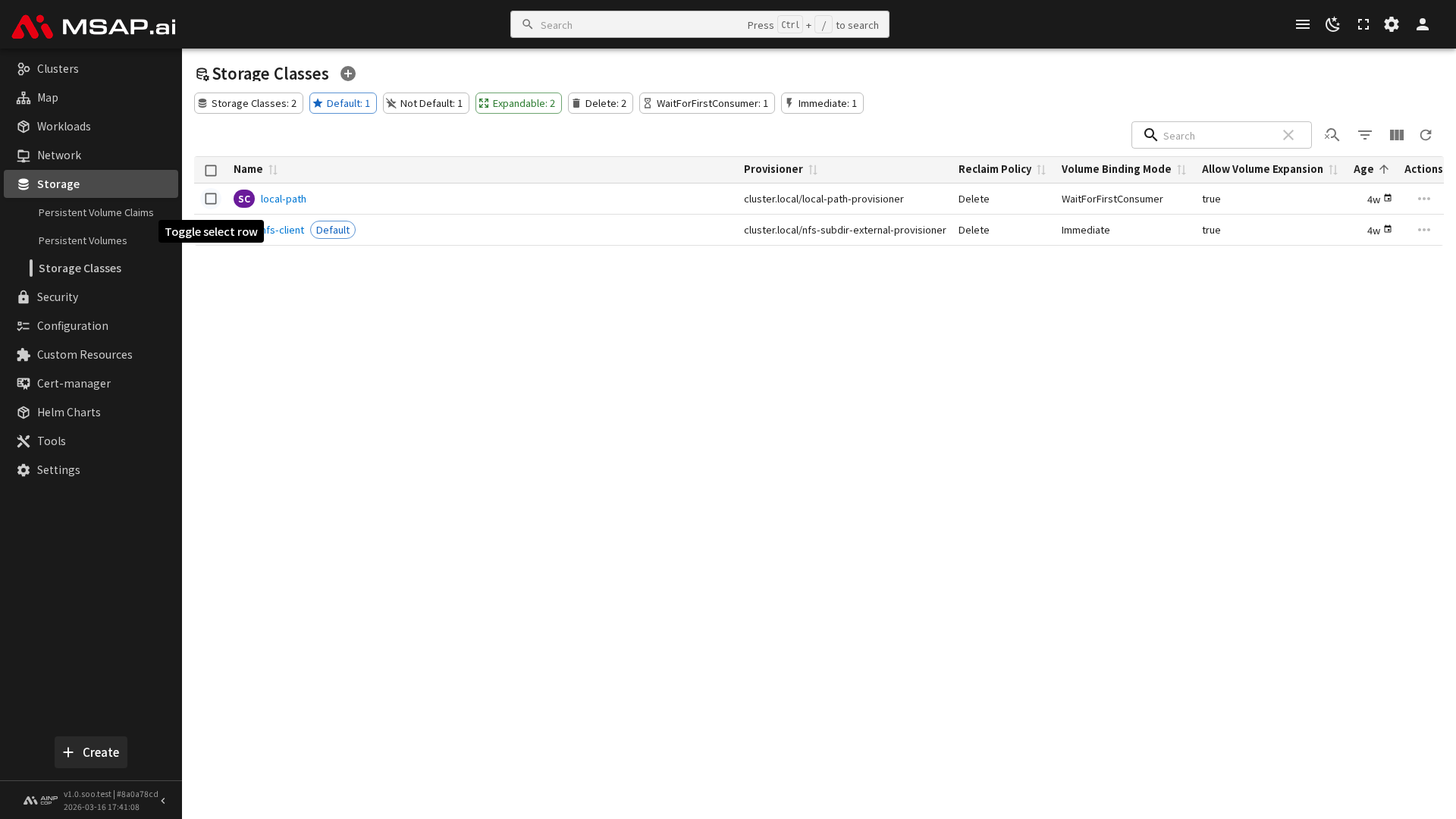 참고: 스토리지 클래스는 GS 메뉴 모드에서는 숨겨져 있습니다. 전체 메뉴 모드로 전환해야 확인할 수 있습니다.