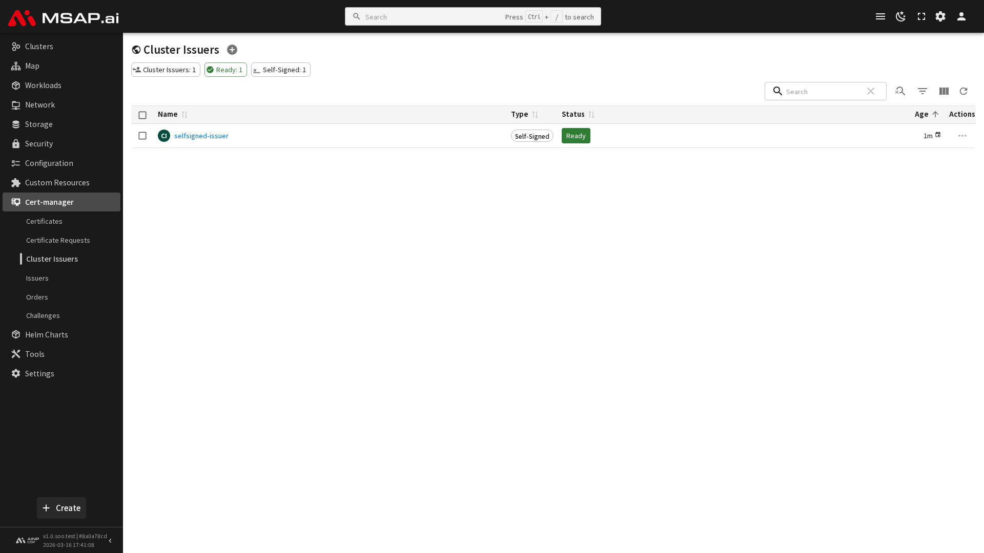 • 타입: 발급자 유형 (ACME, CA, SelfSigned, Vault 등)