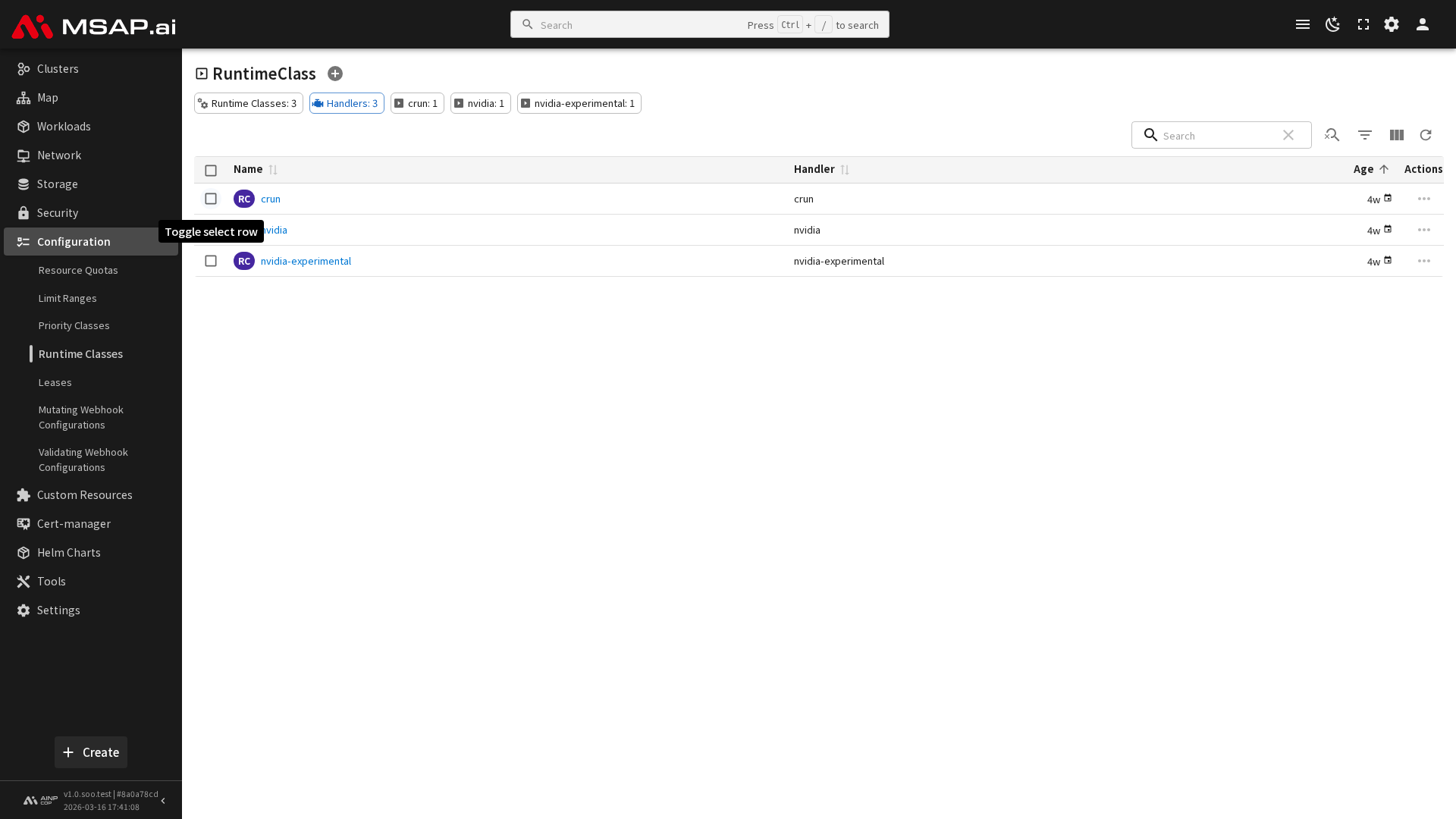 - 스케줄링(Scheduling): 이 런타임을 지원하는 노드를 선택하기 위한 노드 셀렉터와 톨러레이션입니다.