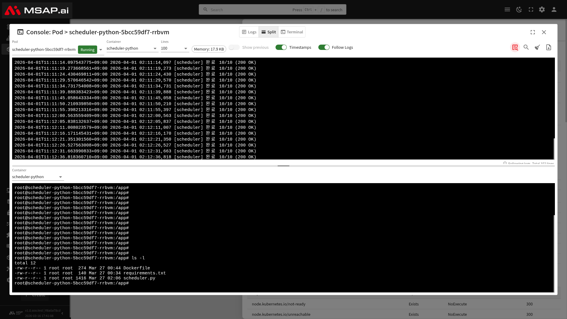 | Pod | 실행 중인 파드 수 / 요청된 파드 수 (예: 1/1) |