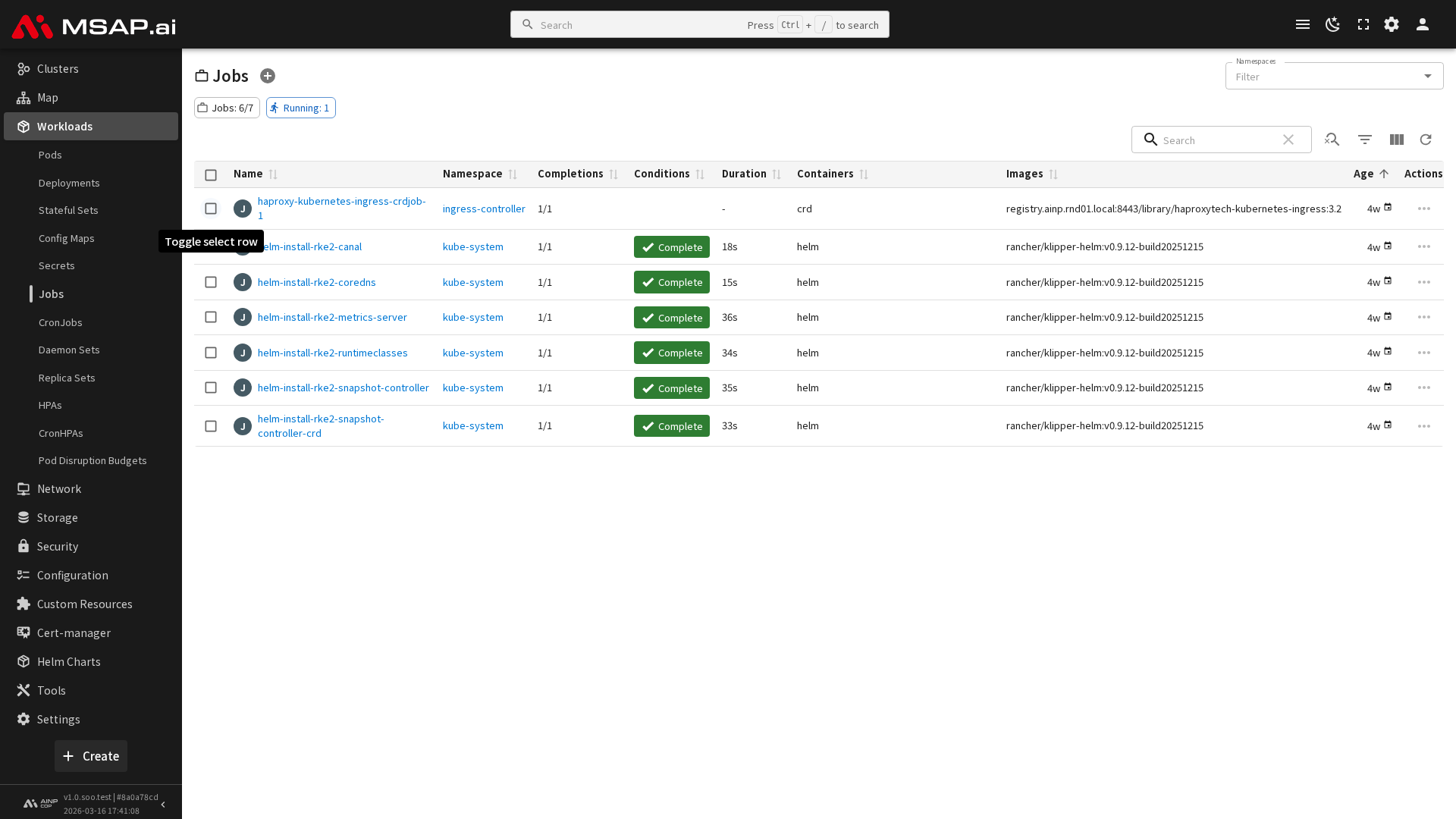 MSAP.ai 콘솔의 '작업(Job)' 메뉴에서는 하나 이상의 파드를 생성하여 지정된 수의 파드가 성공적으로 완료되도록 보장하는 워크로드를 관리합니다. 작업은 배치 처리, 데이터베이스 마이그레이션 등 한 번 실행되고 종료되는 태스크를 수행하는 데 유용합니다.