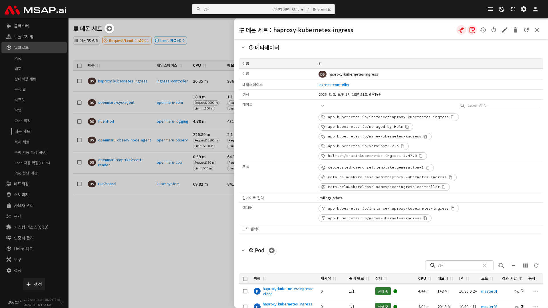 목록에서 특정 데몬 세트의 이름을 클릭하면 상세 정보를 확인할 수 있는 화면으로 이동합니다.