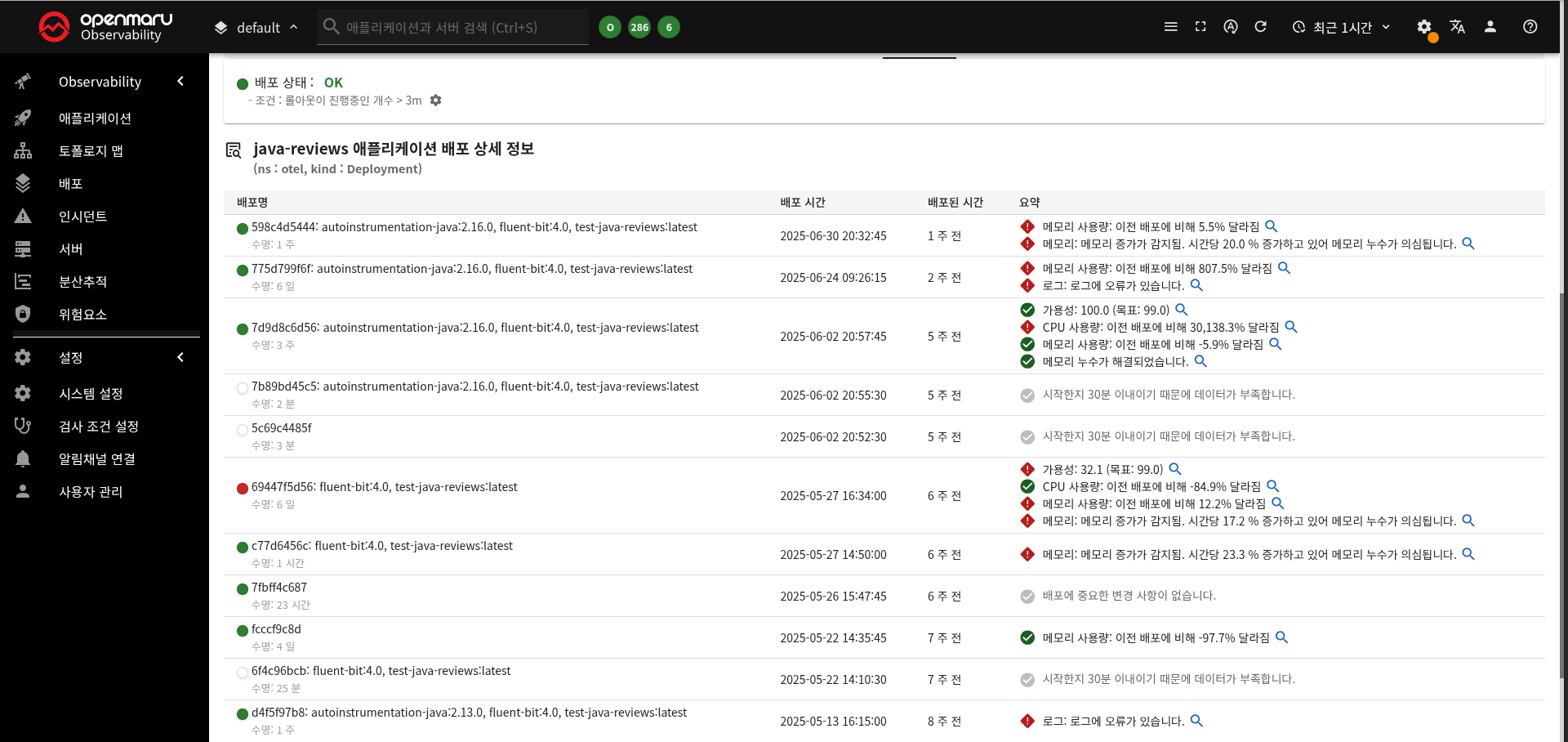 - 설정 항목: 오류 추적 보기, 응답 시간 SLO, 모든 추적 보기