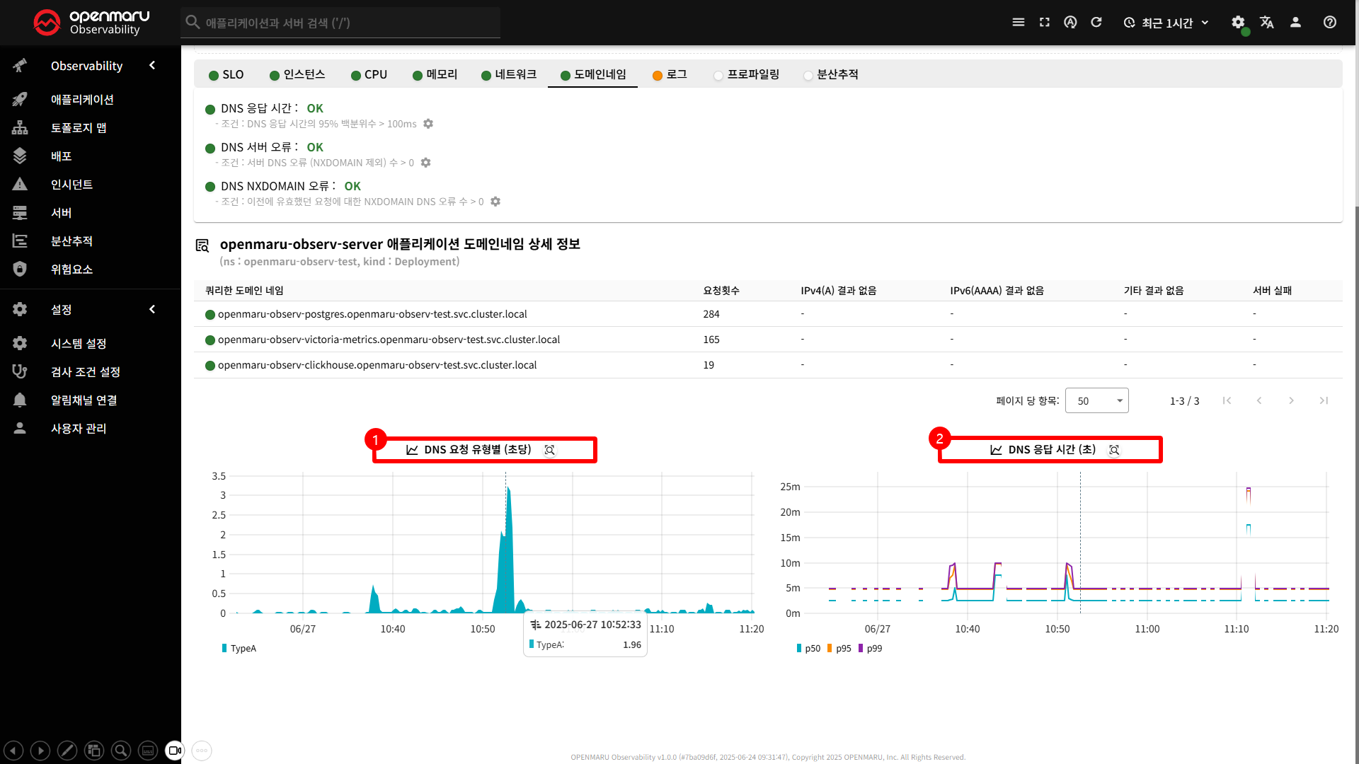 DNS 응답 시간을 백분위수 별로 집게합니다.