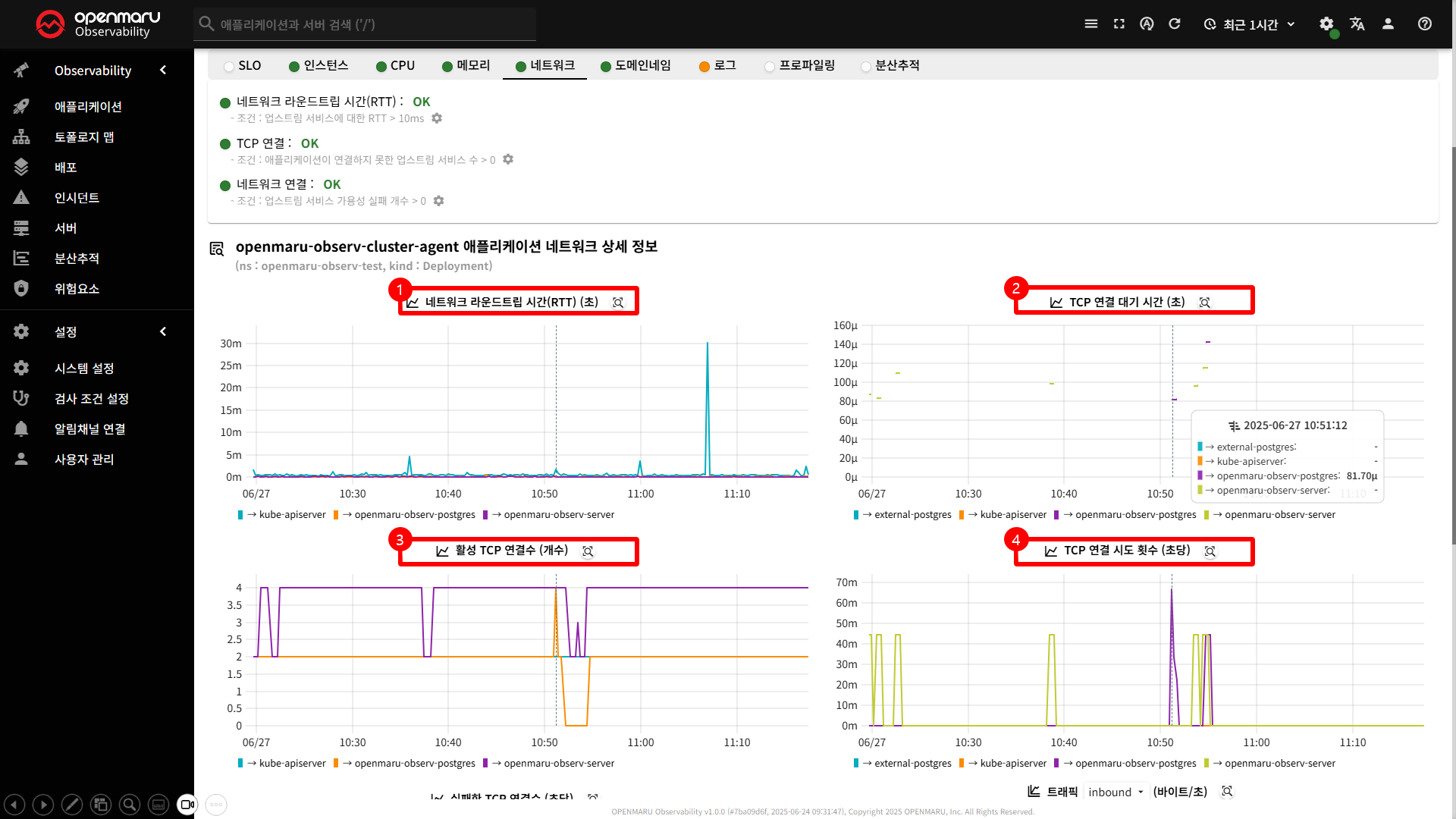 - 임계값 표시 : SLO 목표 시간을 기준으로 점선 표시
