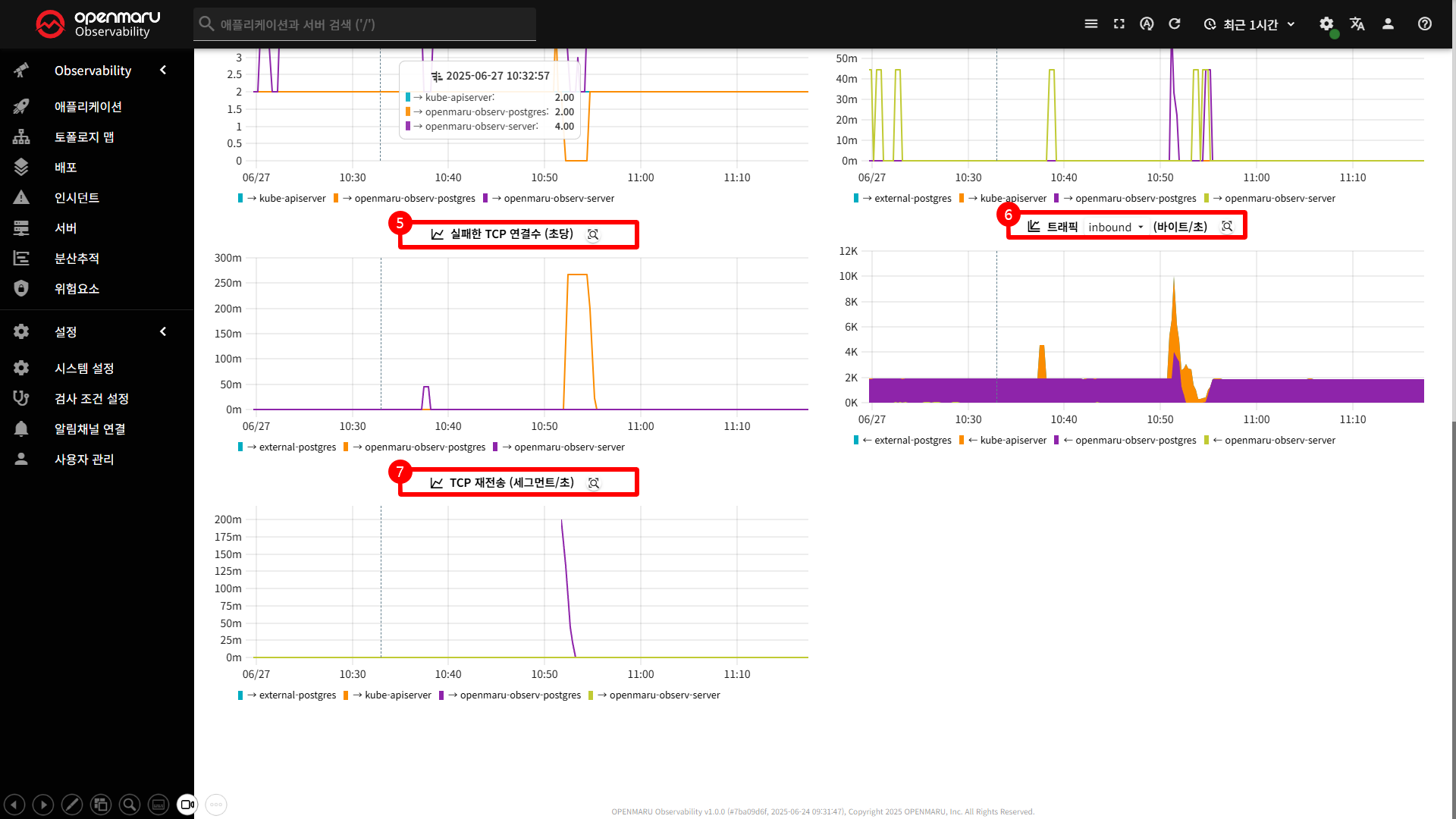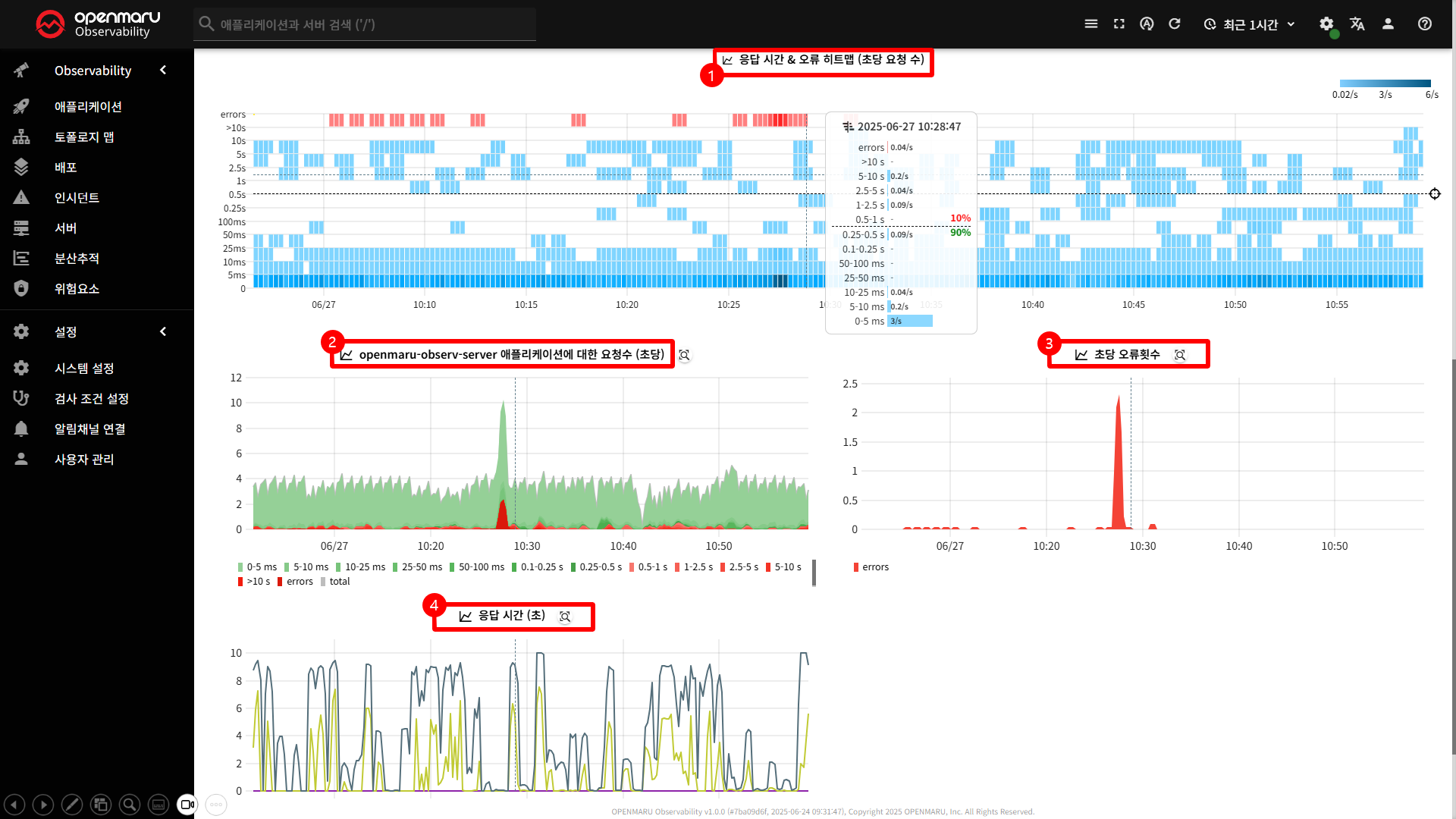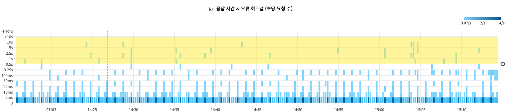- 마우스 Hover : 해당 시점의 응답 시간별 요청 수 확인