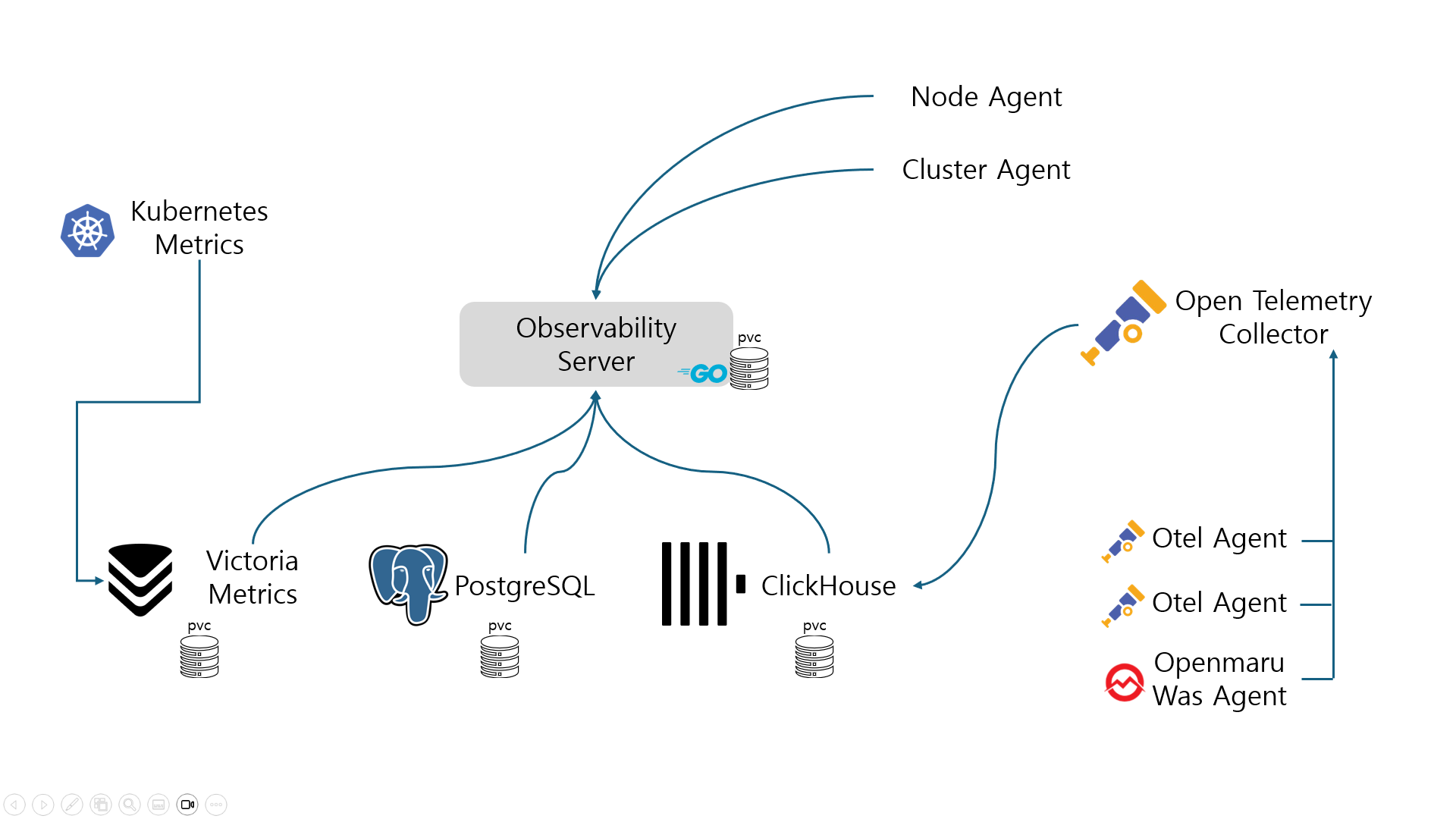 오픈소스는 개별적으로 설치/구성하여야 하지만, Observability에서는 해당 3대 요소를 통합하여 한 눈에 볼수 있도록 지원하며, 추가로 Profiling 기능을 제공합니다.